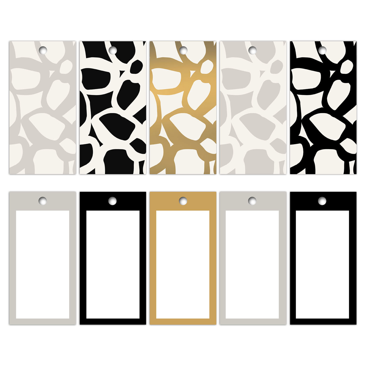 De cadeaulabels zijn dubbelzijdig bedrukt en voorzien van een boorgat. Op de achterzijde is ruimte om de naam van de ontvanger te schrijven.