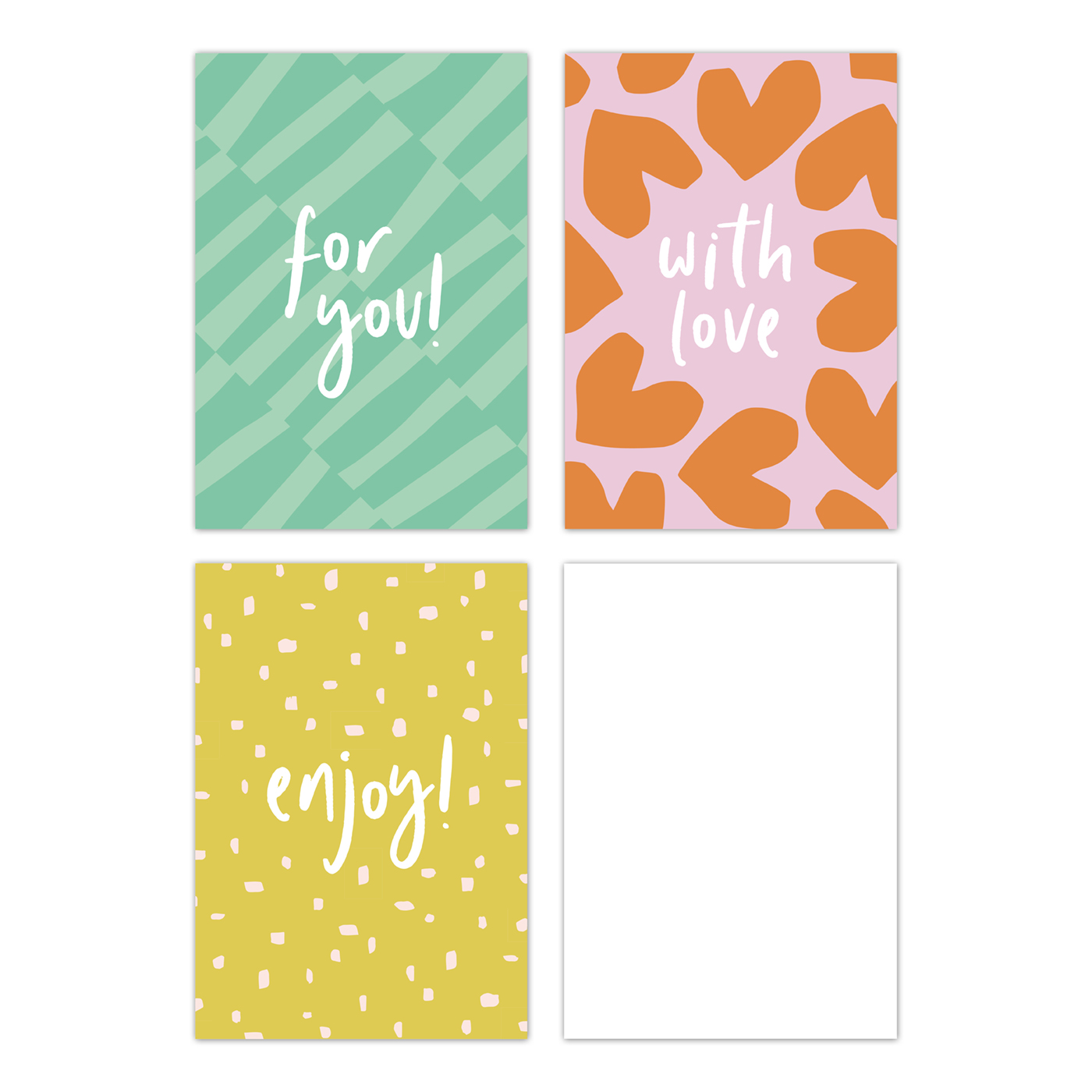 7,4×10,5cm (A7). Enkelzijdig bedrukt, voorzien van goudfolie. 350 grams papier. 30 stuks, 10 van ieder. Advies verkoop per stuk € 0,75.